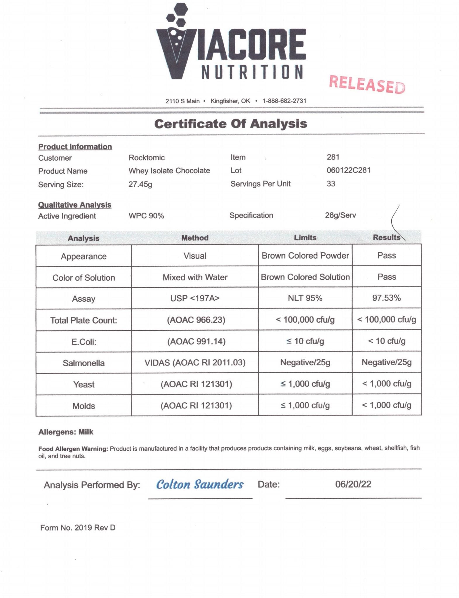 | 100% Whey Protein Isolate is formulated to support muscle growth, immunity, digestive health, increase satiety, and boost metabolic rate. Our 100% Whey Protein Isolate is microfiltered to remove any extra fat and sugar providing a lean protein source to your post-workout/daily nutrition. Our product is synthesized utilizing the latest scientific research and formulated with the purest sources of whey protein concentrate to produce world class results. Our formula is third party independently tested for heavy metals, impurities, made in the USA, GMP certified, and produced in an FDA registered facility. 1% of the supplements on the market can match our world class standards. |
