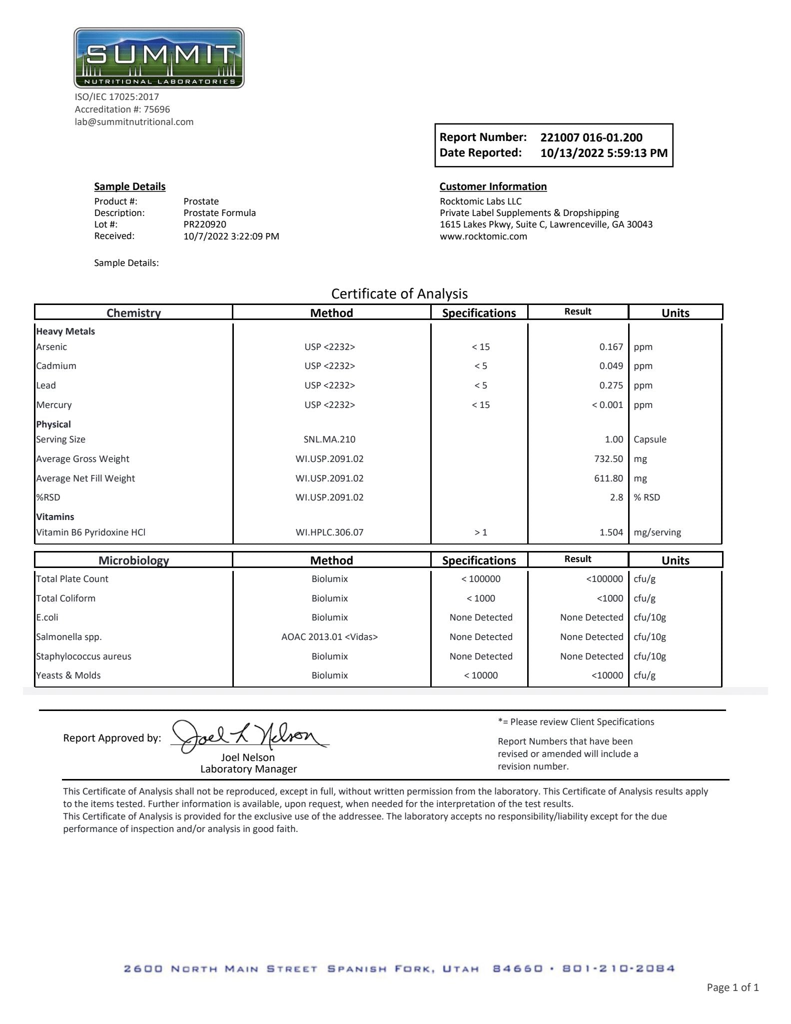 Prostate Support is formulated to support prostate health, antioxidant activity, energy, cognition, sexual function, mood, and cardiovascular health. Our product is synthesized utilizing the latest scientific research and formulated with high-quality ingredients. Our formula is third-party independently tested for heavy metals, impurities, made in the USA, GMP certified, and produced in an FDA registered facility. 1% of the supplements on the market can match our world-class standards. |